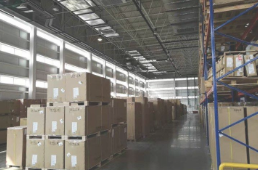 一栋9974平米,高标准高台库,现在可用,金刚砂地面,烟感喷淋,高度14.9米,丙二类消防,有货架,货架免费使用。