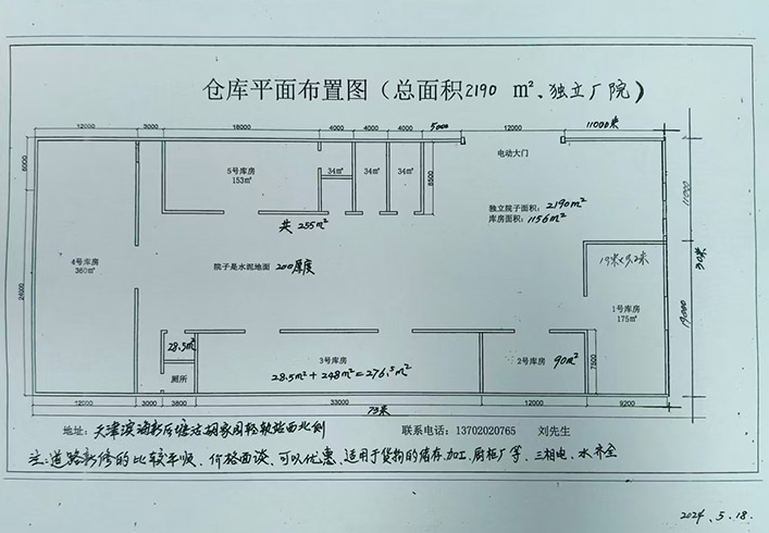 地址天津市滨海新区塘沽胡家园轻轨站西北侧(独院)厂库房出租,占地面积2200平米。建筑面积1200平米。车间面积850平米,办公住宿面积350平米,适合生产加工,存储等行业,水电齐全,交通便利,中介勿扰!欢迎有意向者前来洽谈!