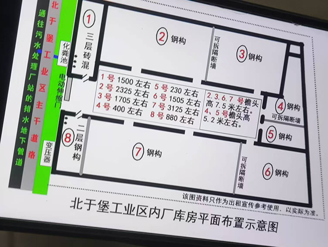 厂库房一:面积5500平米,配套办公800平米